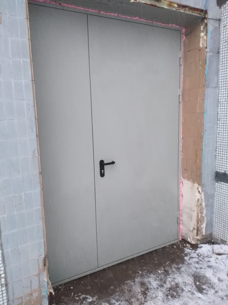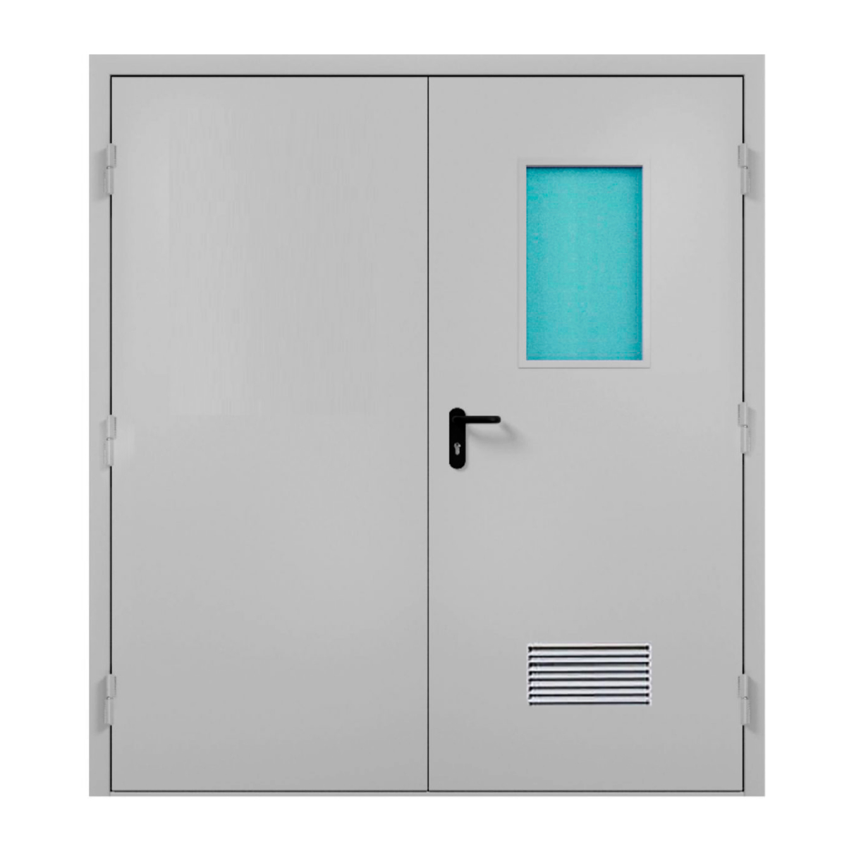 Дверь техническая двупольная с окном и решеткой